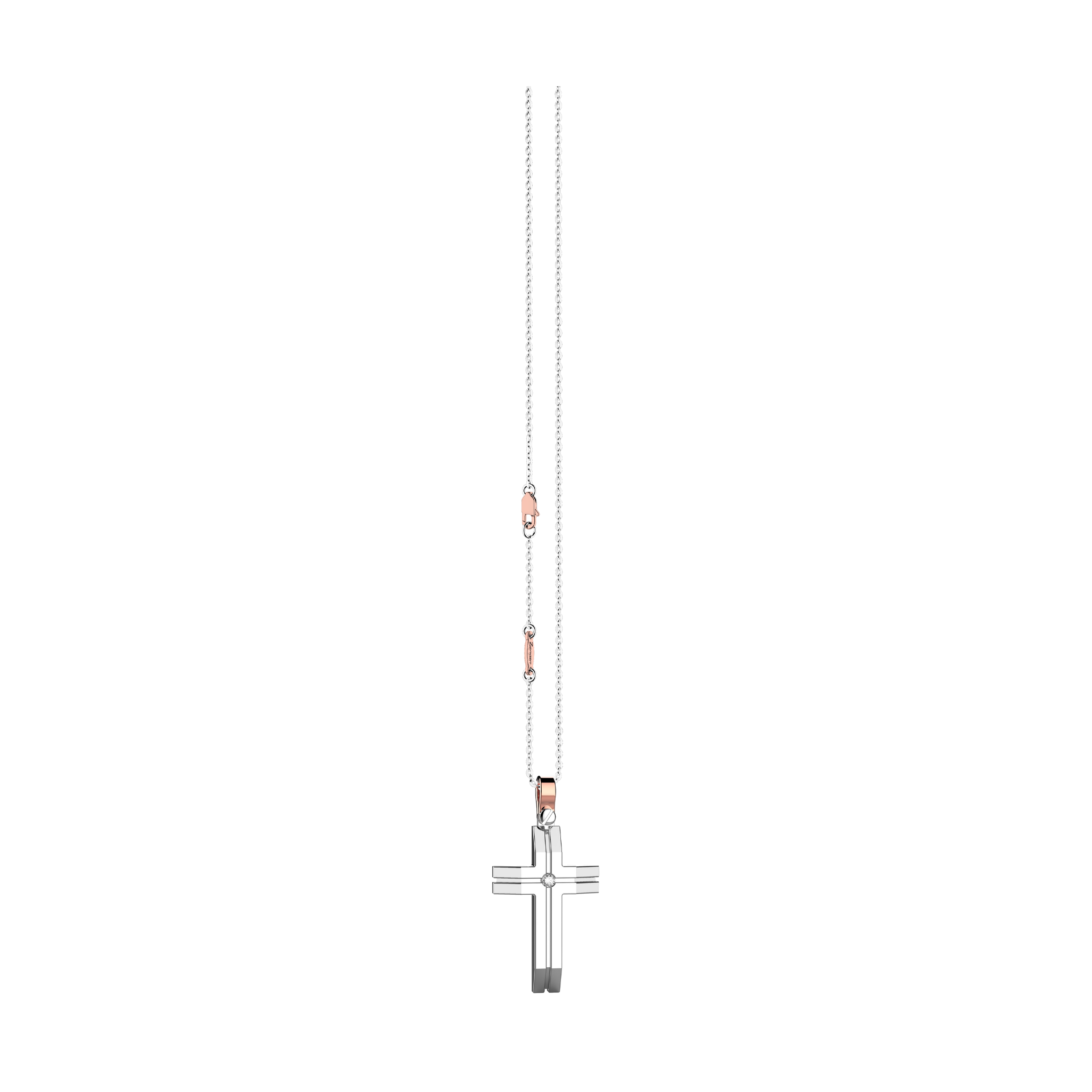 18kt White Gold Angled Cross Necklace with 0.04 Carat Diamond