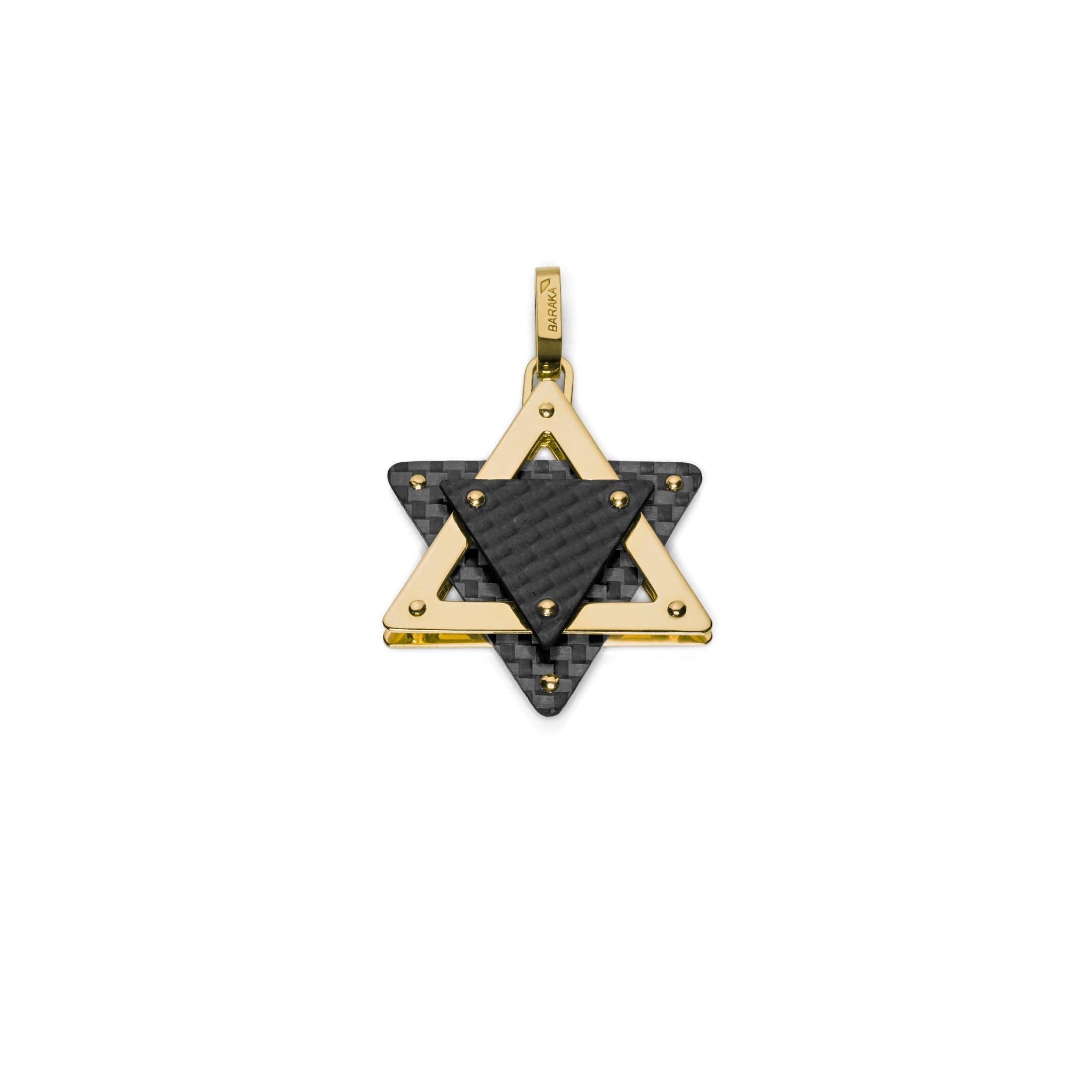 Yellow Gold and Carbon Fiber Star of David Pendant