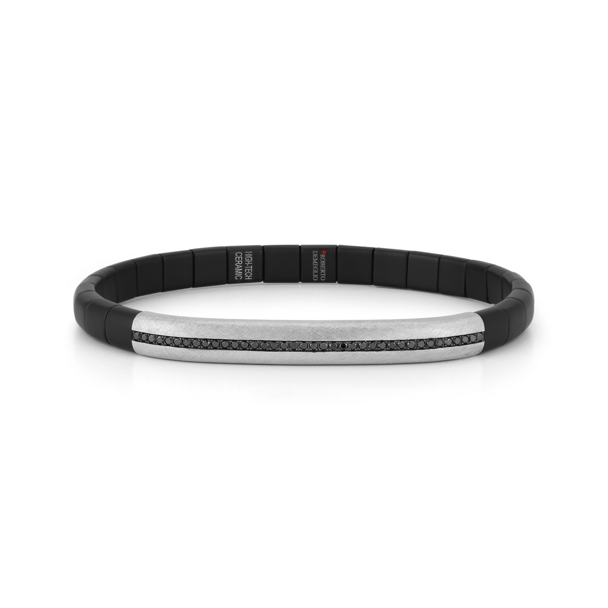 Manetta Matte Black Ceramic Bracelet And 18kt Gold With Black Diamonds