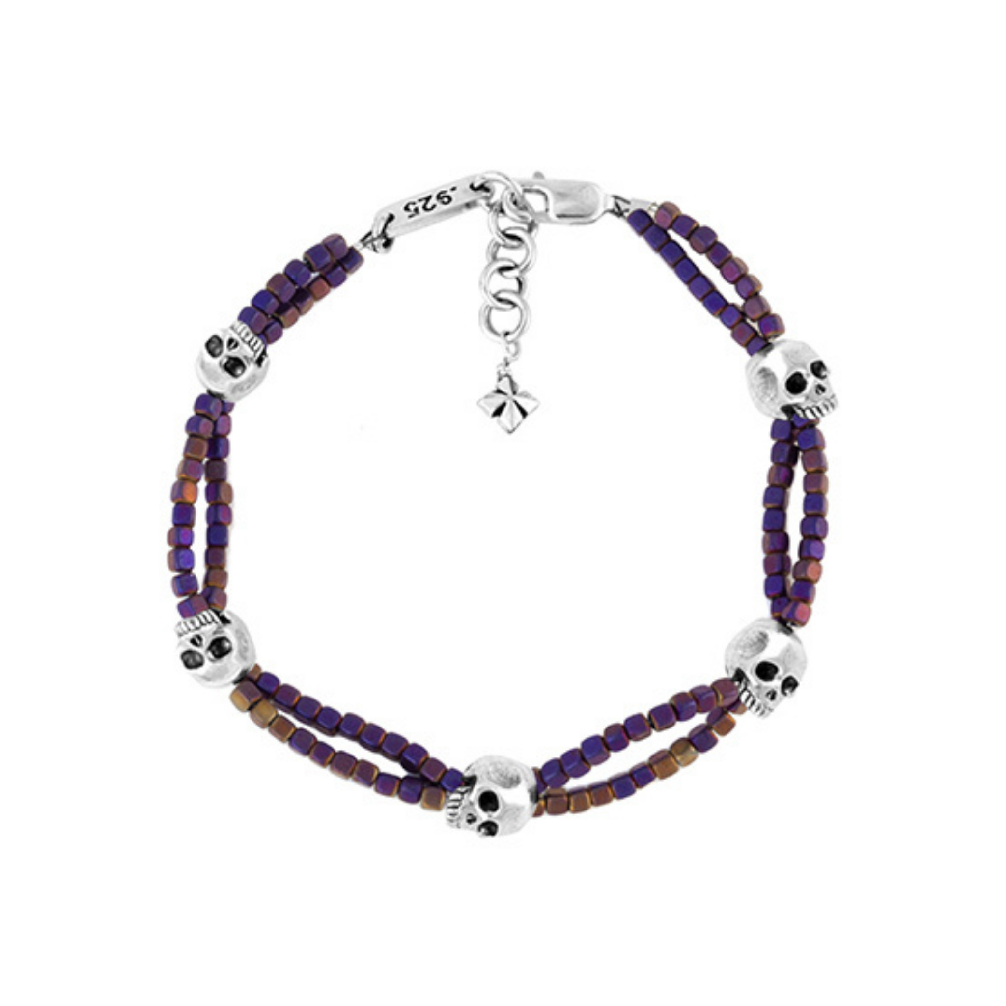 Purple Square Hematite Double Strand Bracelet with Skulls
