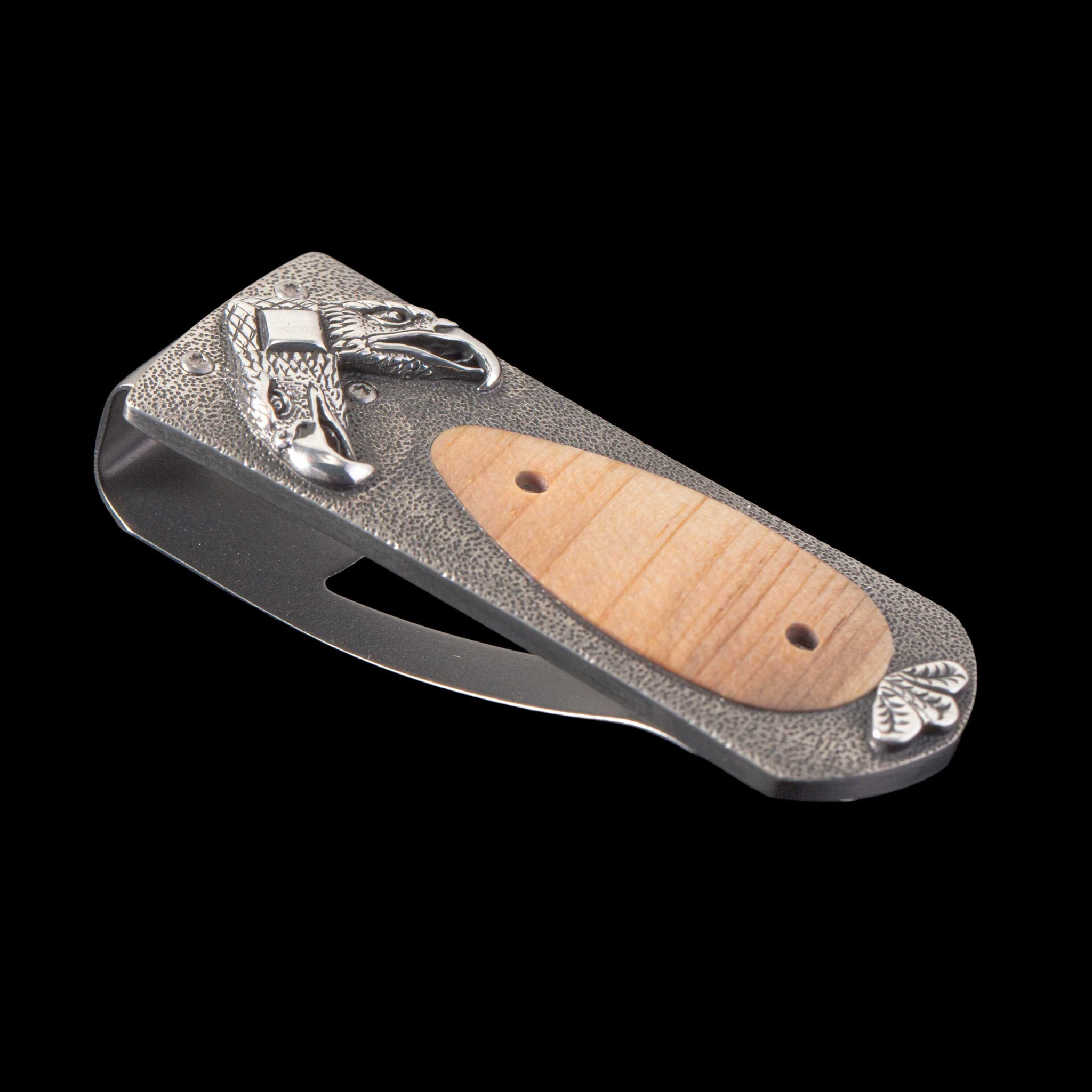 The Zurich ‘Independence’ is a beautiful money clip featuring a frame in hand-carved sterling silver, and inlaid with wood from the original beams of Independence Hall. The clip is machined and polished from tempered stainless steel, with a beautiful engraving bright cut against the matte-finished background.